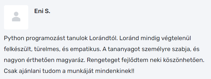 Fordulhatsz hozzám Excel, Access és egyéb Office termékek kapcsán, az érettségi felkészítés szakterületem - illetve programozóként segítségemmel kalandozhatsz a kódolás világban is. Python, C, C# és temérdek más programnyelvben vagy webfejlesztésben tudok segíteni. A tanóráim után mindig megkapod a tudnivalókat összefoglaló jegyzet formájában is. ⌨️